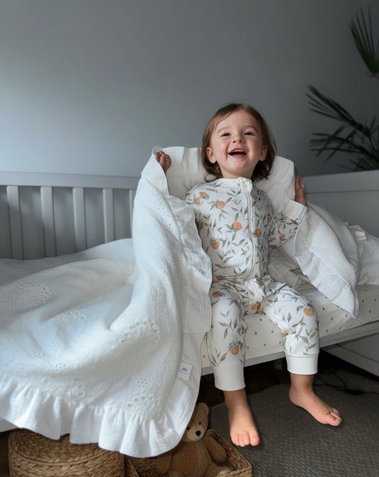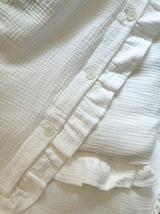 White Muslin Kids Bedding Set with Ruffles | Soft Cotton Nursery Bedding