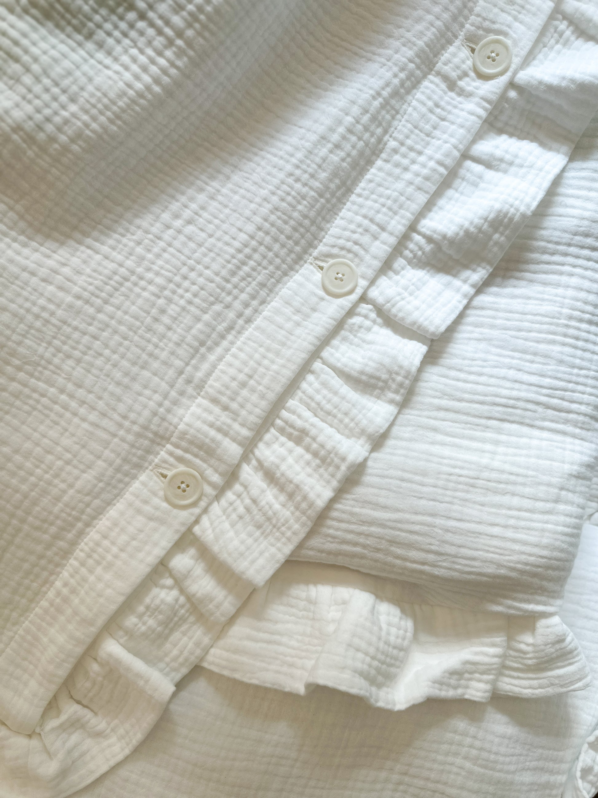 White Muslin Kids Bedding Set with Ruffles | Soft Cotton Nursery Bedding